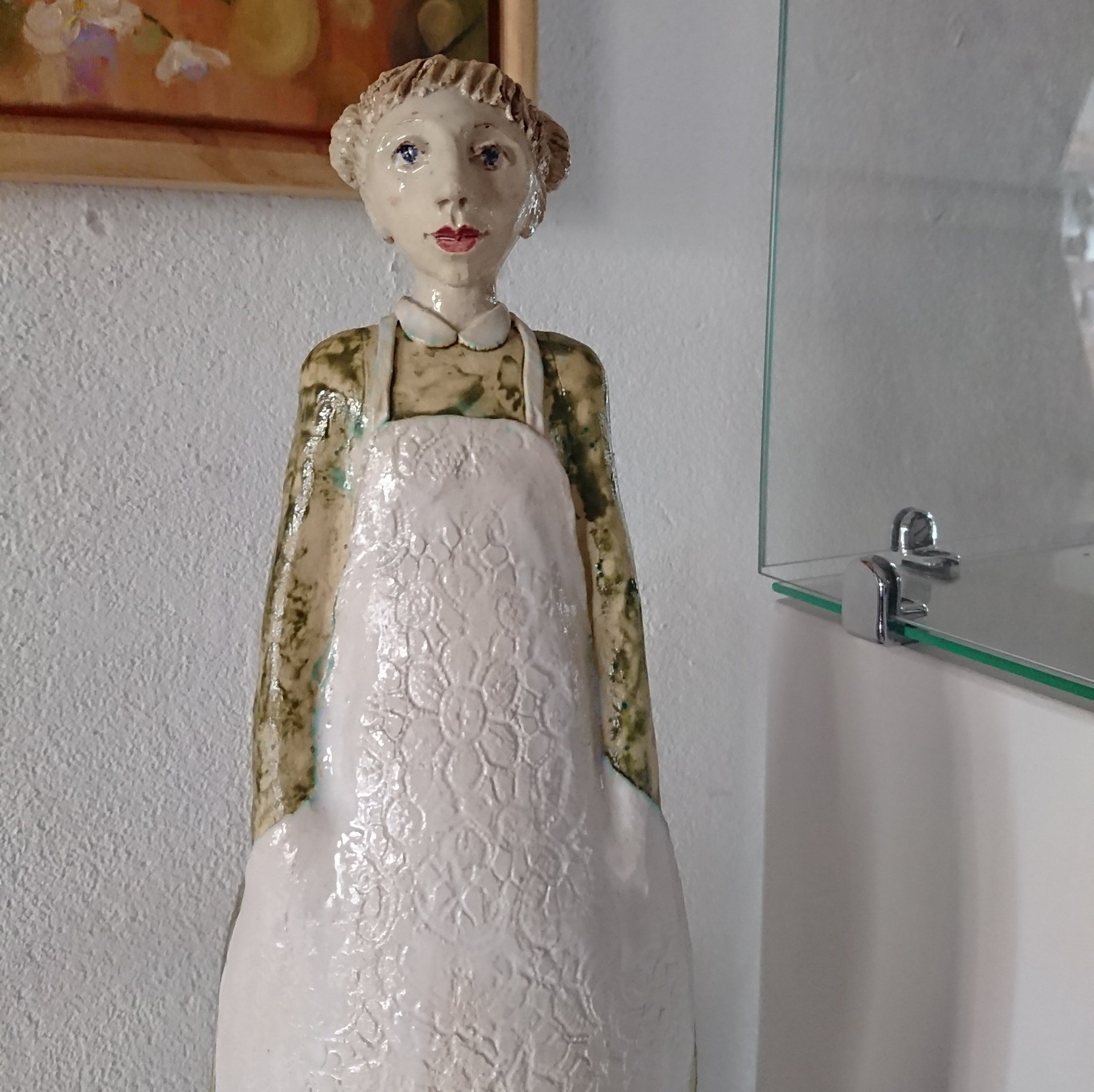 Sie beschäftigt sich in ihren figürlichen Arbeiten vorwiegend mit dem Menschen. Ihre Figuren sind mal mehr, mal weniger ernst. Oft ist es eine vage Idee, ein Eindruck oder eine Erinnerung, die am Anfang steht. Das Ergebnis will zum Betrachten und "Be-greifen" auffordern - Überraschungen inbegriffen.